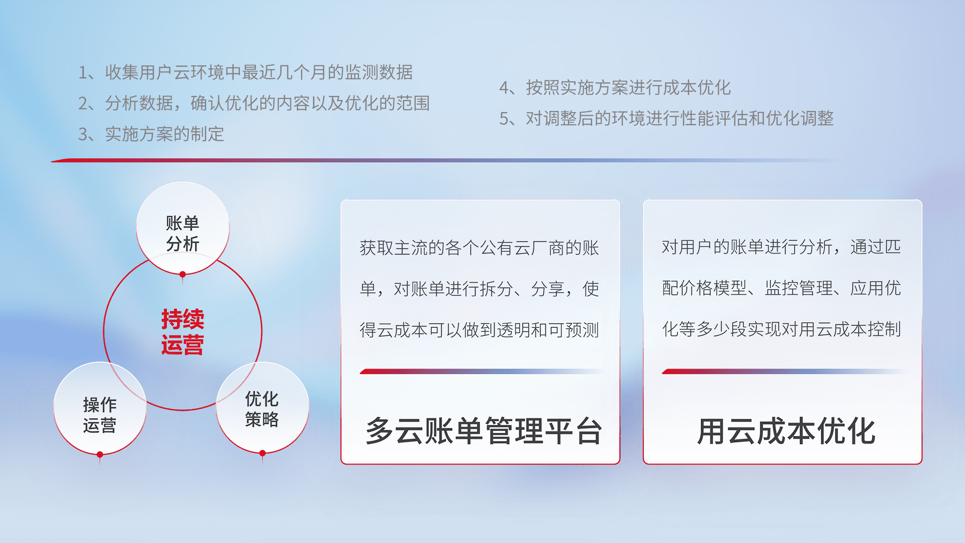 监控业务系统资源开销,,对资源的消耗精确计量,,,实现费用的透明化管理,,,,不断提升资源使用率,,调整资源购买方式,,降低资源费用成本,,用云成本可预测、、、用云费用可优化,,云资源配额有据可依。。